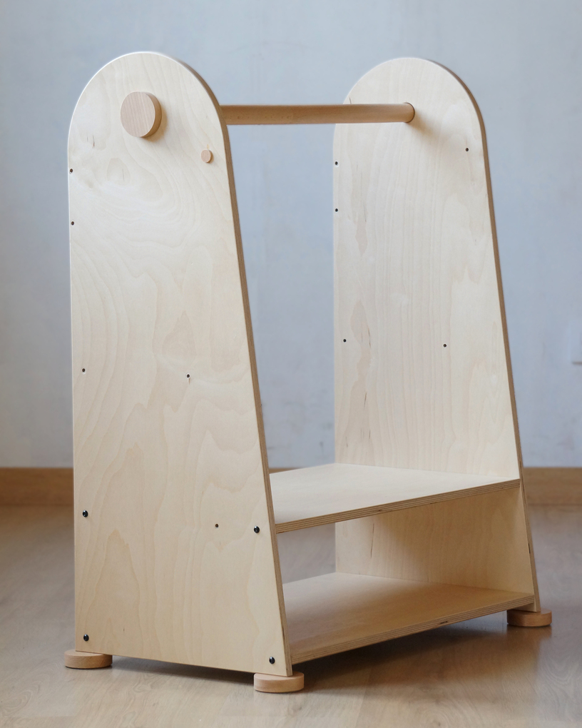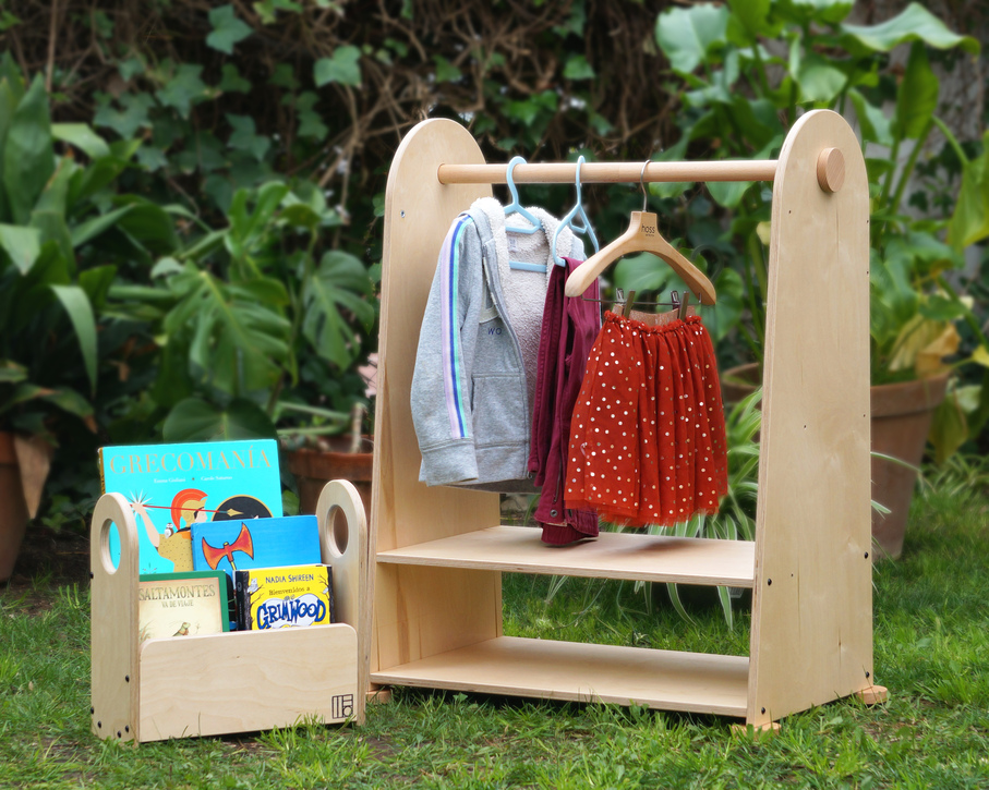 Torre para niños de 1 a 3 años, y paquete de conversión a perchero y revistero (de 3 a 9 años).